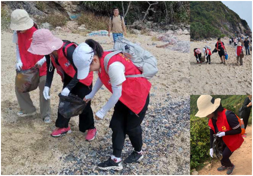 在穿越体验活动中,党员们发现,很多徒步爱好者在欣赏沿途美景的同时,留下各色各样的垃圾,给美丽的海岸线蒙上了一层挥之不去的阴影,严重影响生态环境。为保护深圳最美的海岸线,党员干部带头,与工会委员们、职工们拿着垃圾袋、铲子等工具分别沿着海岸线拾捡塑料瓶、塑料袋、纸巾、食物残渣等垃圾,不论是在海滩上的还是草丛里的,甚至是海岸边的海面漂浮的杂物都一概清理干净,用实际行动捍卫海滩生态环境。