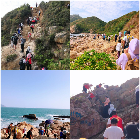 深圳东西涌海岸线约4公里,徒步路里程约9公里,历时6个小时。沿途需经过四个原生态沙滩,攀爬6座山峰,和穿行数个礁石群。要完成集体徒步穿越,需要高度的团队合作精神和顽强的意志力。整个穿越体验活动中,党员干部充分发挥先锋模范作用,有困难党员先上、有问题党员解决。党员们分工合作,一部分党员带头开路,寻找最安全的线路;一部份党员殿后,遇到体力不支的职工扶上一把,让掉队的跟上来。在党员干部的率领下,工会委员们通力合作,带领全体职工安全完成穿越体验。