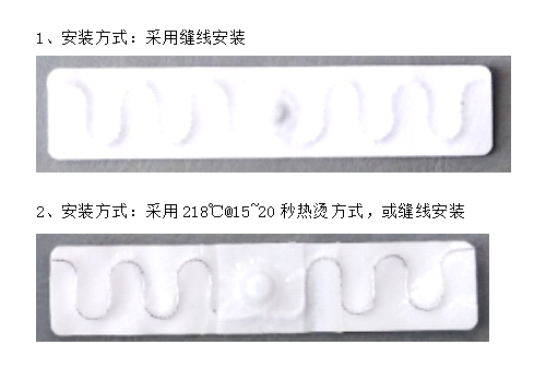 *在缝制安装时,缝线不能损伤标签上的金属线和芯片模块;